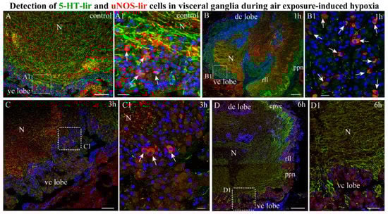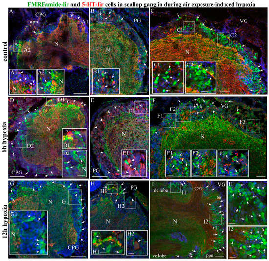2.3.4. FMRFamide-lir Distribution after Hypoxia Exposure