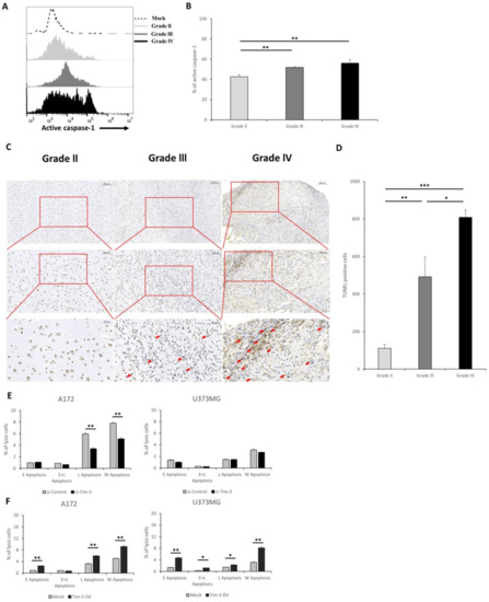3.5. Tim-3/Gal-9 Are Correlated with Caspase-1 Activation and Induces Programmed Cell Death in Glioma