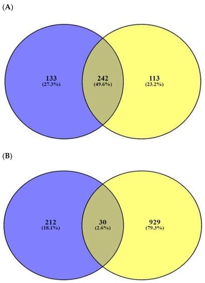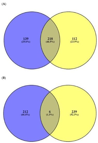 - Lin, G.; Chai, J.; Yuan, S.; Mai, C.; Cai, L.; Murphy, R.W.; Zhou, W.; Luo, J. VennPainter: A Tool for the Comparison and Identification of Candidate Genes Based on Venn Diagrams. PLoS ONE 2016, 11, e0154315. [Google Scholar] [CrossRef] [Green Version]