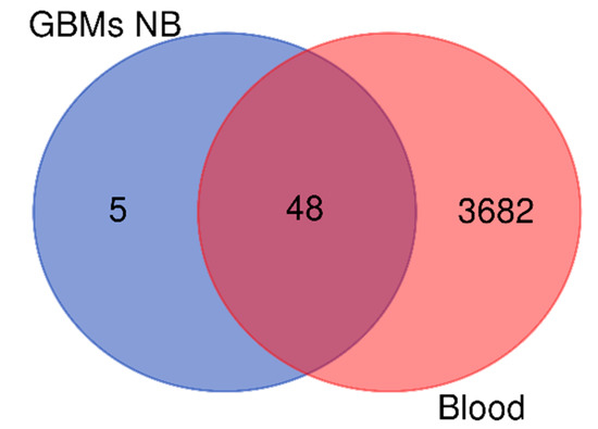 Venn diagram of the 53 NB proteins of the samples and blood proteins of Human Protein Atlas.