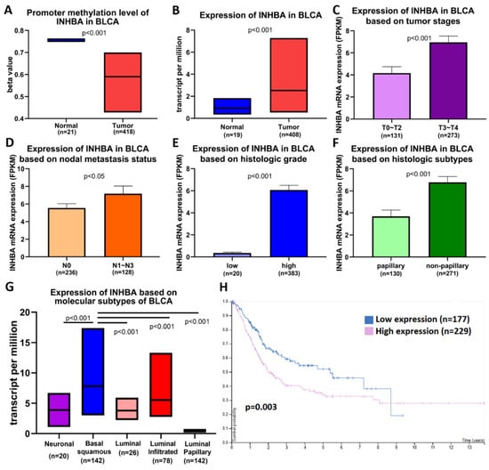 2.2. Association between the Methylation and Expression of INHBA and Clinical Characteristics of Bladder Cancer Patients