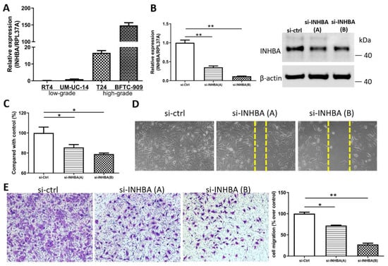 - Lee, H.Y.; Li, C.C.; Huang, C.N.; Li, W.M.; Yeh, H.C.; Ke, H.L.; Yang, K.F.; Liang, P.I.; Li, C.F.; Wu, W.J. INHBA overexpression indicates poor prognosis in urothelial carcinoma of urinary bladder and upper tract. J. Surg. Oncol. 2015, 111, 414–422. [Google Scholar] [CrossRef]