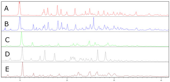 Figure 3). The observed differences in diffractograms C, D, and E were caused by yielding different either polymorphs or solvates via the recrystallization. Furthermore, as the recrystallization using chloroform yielded a single crystal, we also solved the structure using single-crystal X-ray diffraction.