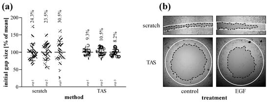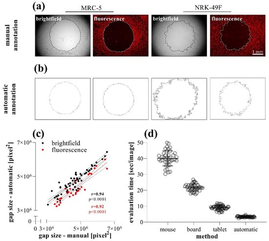 - De Ieso, M.L.; Pei, J.V. An accurate and cost-effective alternative method for measuring cell migration with the circular wound closure assay. Biosci. Rep. 2018, 38, BSR20180698. [Google Scholar] [CrossRef]