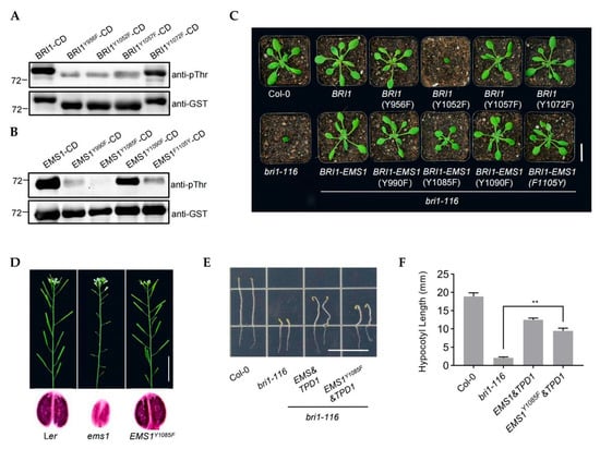 2.4. The Tyrosine (Tyr) Residues Y1052 Is Essential for BRI1 but the Corresponding Residue Y1085 Is Not Essential for EMS1