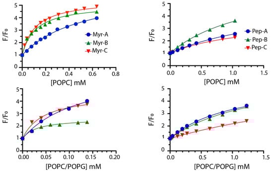| Myr-B | POPC | (4.7 ± 0.6) × 105 | −32.37 | 3.62 |