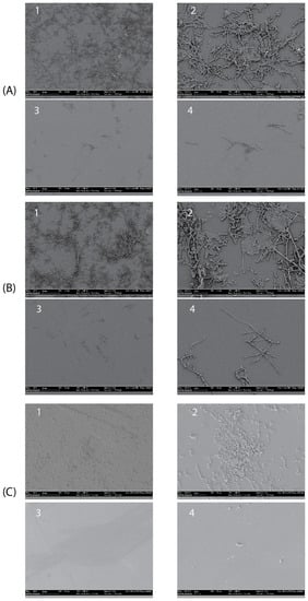- Short, B.; Brown, J.; Delaney, C.; Sherry, L.; Williams, C.; Ramage, G.; Kean, R. Candida auris exhibits resilient biofilm characteristics in vitro: Implications for environmental persistence. J. Hosp. Infect. 2019, 103, 92–96. [Google Scholar] [CrossRef]