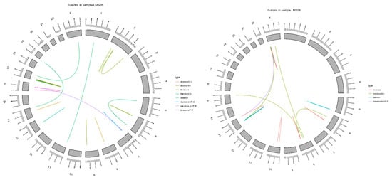 2.5. Structural Rearrangements Affect Specific Regions and Genes in LM and LMS