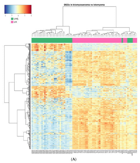Despite LM and LMS having been previously characterized at a molecular level [,,], the differential profiling of these myometrial tumors based on genomic/transcriptomic characteristics could allow us a better understanding of the underlying tumorigenic processes as well as to develop novel tools that may aid the current clinical diagnosis. Given these challenges, we aim to discover specific molecular signatures for the differential diagnosis of myometrial tumors.