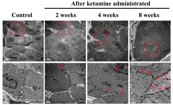 12]. Here, the ketamine-administered rats of the 2-, 4-, and 8-week periods exhibited certain levels of urodynamic dysfunction according to the dosage, exposure period, and severity of the disease condition. This scenario depicted the severity and inflamed status of the detrusor muscle and submucosal layer. The TEM images also conformed to the exact status of the detrusor muscle and submucosal layer. The foremost reason for this condition is ketamine-induced oxidative stress tailed with persistent inflammation, which insistently leads to tissue injuries significantly in the detrusor muscle and enhances KC’s pathogenesis [