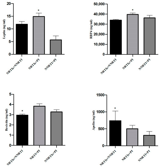 2.6. The Potential Effects of Different Antiretroviral Drugs on Adipokine Concentrations