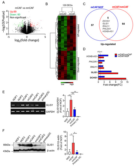 2.1. Gene Expression Profile of Primary mCAFs and nmCAFs Isolated from the Cancer Tissues of OSC Patients