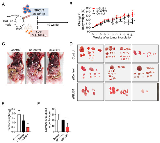2.3. GLIS1 Silencing Reduces the Peritoneal Spread of OC Cells In Vivo