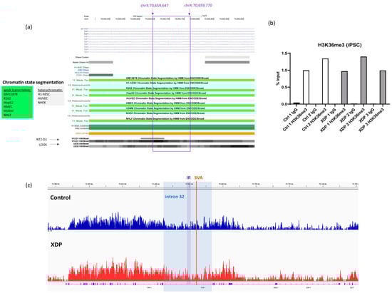 2.3. The Intronic Region Included in the Transcript Is Associated with H3K36me3 in Control and XDP Cells