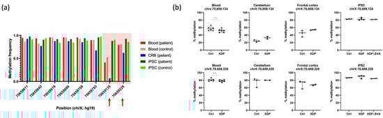 - Krause, C.; Schaake, S.; Grütz, K.; Sievert, H.; Msc, C.J.R.; König, I.R.; Msc, B.L.; Jamora, R.D.; Rosales, R.L.; Diesta, C.C.E.; et al. DNA Methylation as a Potential Molecular Mechanism in X-linked Dystonia-Parkinsonism. Mov. Disord. 2020, 35, 2220–2229. [Google Scholar] [CrossRef]