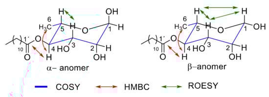 3.3. General Procedure for the Pseudomonas stutzeri Lipase-Catalysed Synthesis of 4-O-lauroyl rhamnose (1e)