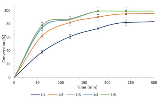 2.3. Effect of Substrates Molar Ratio