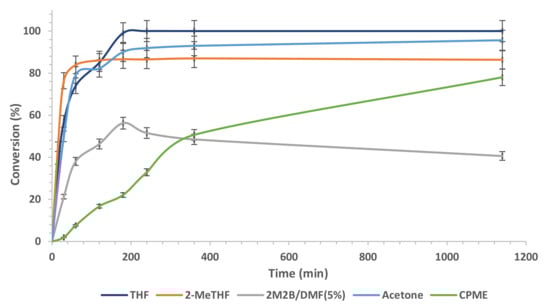 2.4. Effect of the Organic Reaction Medium