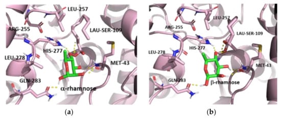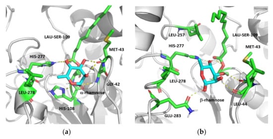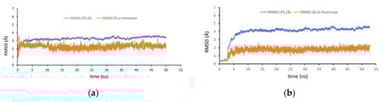 2.6.1. Docking of Rhamnose Anomers to PSL and Structure Stability Studies by Molecular Dynamic Simulation