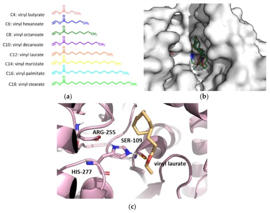 2.6.2. Docking of Vinyl Esters of Fatty Acids with Chain Lengths between C4 and C18 to PSL