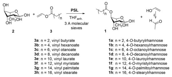 2.1. Enzymatic PSL Synthesis of 4-O-lauroylrhamnose