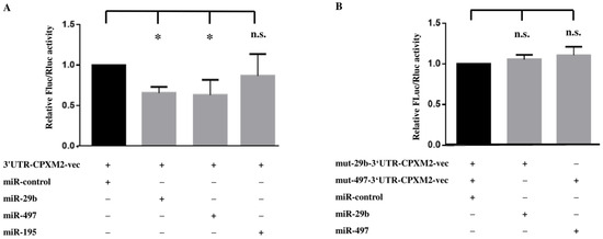 3.2. CPXM2 Expression Is Directly Regulated via miR-29b and via miR-497