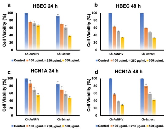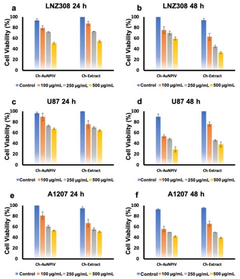 2.4. Cytocompatibility of Ch-Extract and Ch-AuNPs