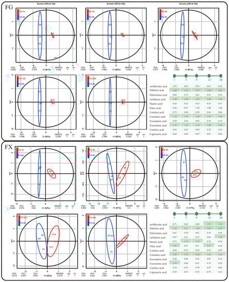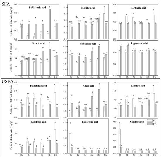 | FX-0 h | 1.72 ± 0.24 e | 0.98 ± 0.16 de | 0.74 ± 0.08 b | 2.38 ± 0.36 cd |