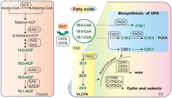 - Ding, J. Genome-wide analysis of three fatty acids biosynthesis gene family and in Gossypium raimondii and the expression pattern of their corresponding orthologs in Tetraploid cultivated cotton (G. hirsutum). Ph.D. Thesis, Nanjing Agricultural University, Nanjing, China, 2015. [Google Scholar]