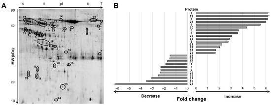 Analysis of differential protein patterns was performed by two-dimensional gel electrophoresis (2DE) coupled to mass spectrometry, as previously described [47,57,58].