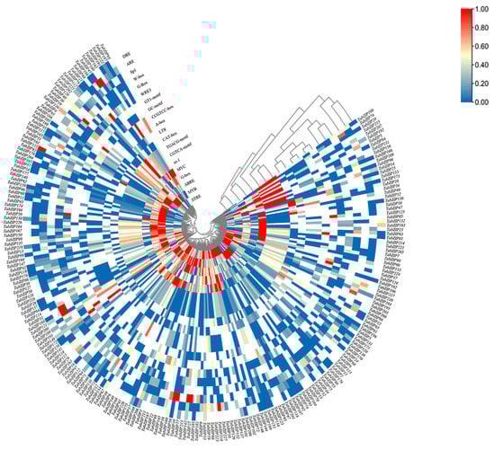 The cis-element of promoter in TabZIP gene family. The depth of the color represents the number of times the cis-element occurs.