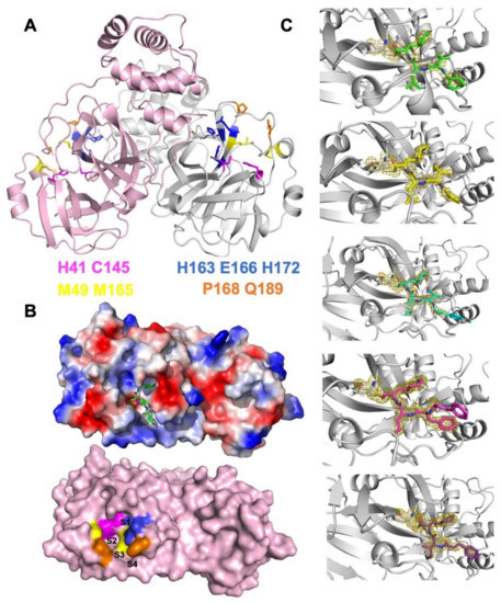 - Zhang, L.; Lin, D.; Sun, X.; Curth, U.; Drosten, C.; Sauerhering, L.; Becker, S.; Rox, K.; Hilgenfeld, R. Crystal structure of SARS-CoV-2 main protease provides a basis for design of improved alpha-ketoamide inhibitors. Science 2020, 368, 409–412. [Google Scholar] [CrossRef] [Green Version]