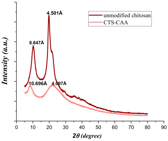 XRD diffractograms of unmodified chitosan and CTS-CAA.