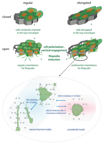 We will now address in more detail the following points: possible mechanisms for vertical engagement, the influence of confinement, the mechanisms for filopodia and dactylopodia-like induction, signalling pathways, and potential applications that may derive from this study.