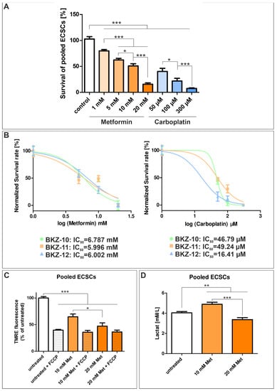2.6. Metformin Targets the Mitochondrial Metabolism of Endometrial Carcinoma-Derived Stem-like Cells