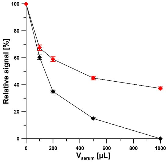 Effect of human serum on the 5 nM 4-Cl-PIMT peak current in the classic (black) and flow (red) systems.