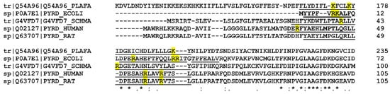 In order to examine the structural features of Class II DHOHDs, we searched the UniProt Database (accessed 16 December 2020) for Class II DHODHs with available X-ray crystal structures using the following query search in PDB: “dihydroorotate dehydrogenase quinone database: (type:pdb)”. From the returned eight hits, three (the DHODHs from