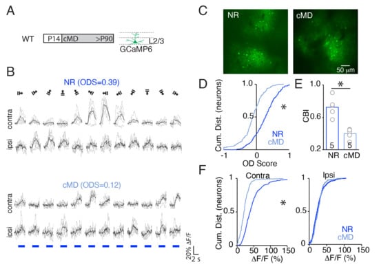 3.2. cMD and MD during the Critical Period Recruit Distinct Forms of Plasticity