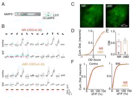 2.2. cMD Decreases the Strength, but Not the Selectivity of the Deprived Eye Pathway of WT but Not MMP9−/− Mice