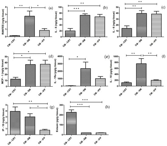 2.3. Cytokine and Chemokine Release in CM from OA Tissues