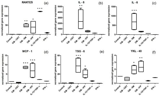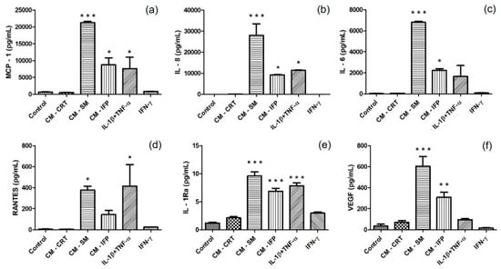 4.5. Characterization of CM from OA Tissues and CM from Stimulated SFs by Multiplex Immunoassay