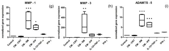 4.3. Stimulation of SFs with CM from OA Tissues and Cytokines