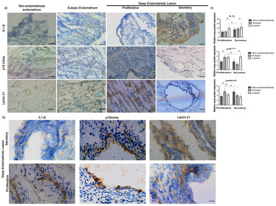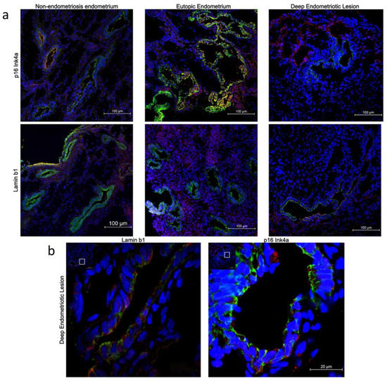 Malvezzi, H.; Dobo, C.; Filippi, R.Z.; Mendes do Nascimento, H.; Palmieri da Silva e Sousa, L.; Meola, J.; Piccinato, C.A.; Podgaec, S. Altered p16Ink4a, IL-1β, and Lamin b1 Protein Expression Suggest Cellular Senescence in Deep Endometriotic Lesions. Int. J. Mol. Sci. 2022, 23, 2476. https://doi.org/10.3390/ijms23052476