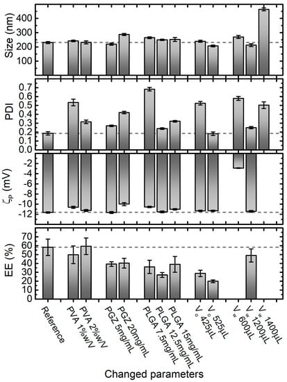 | PLGA concentration (mg/mL) | --- | 7.5, 10, 12.5, 15 |