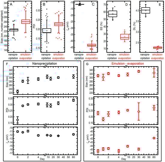 | Nanoprecipitation | Emulsion–Solvent Evaporation | |||||||