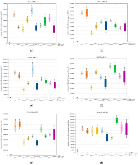 Since all tested compounds increased the level of MDA, which can, in turn, modulate intracellular signaling, in the next step, we checked whether changes in the transcription level of genes encoding antioxidant enzymes occurred. We determined the mRNA levels of the following genes: