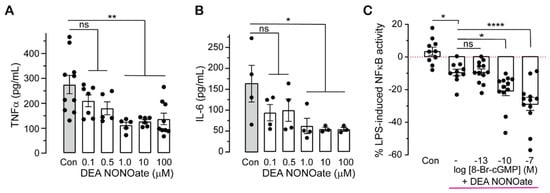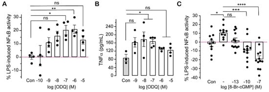 2.2. Pharmacologically Altering cGMP Levels Changes Inflammatory Responses