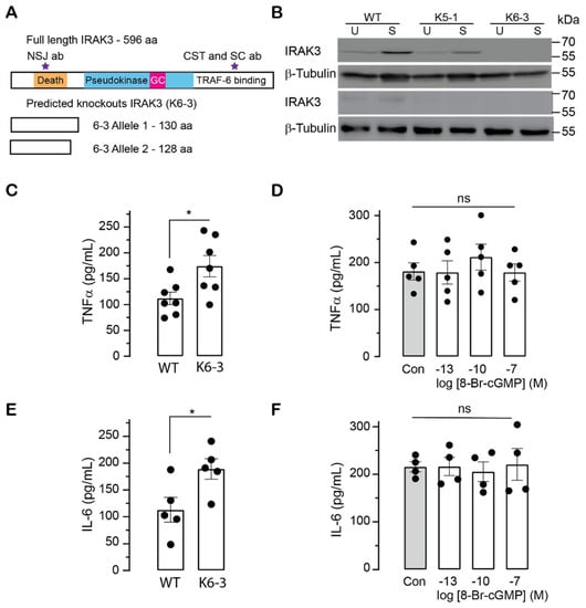 2.3. Effects of cGMP on Inflammatory Markers in Wild Type and IRAK3 Knockdown/Knockout THP-1 Cells