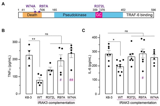4.6. Transfection of Wild Type and Mutant IRAK3 Constructs to IRAK3 Knockdown Cells