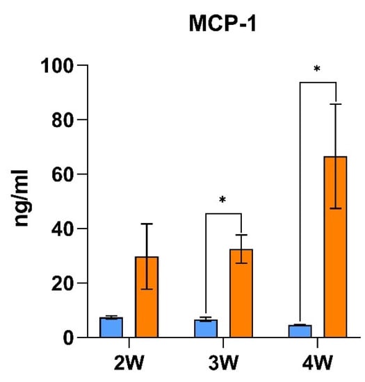 - Deshmane, S.L.; Kremlev, S.; Amini, S.; Sawaya, B.E. Monocyte chemoattractant protein-1 (MCP-1): An overview. J. Interf. Cytokine Res. 2009, 29, 313–326. [Google Scholar] [CrossRef]